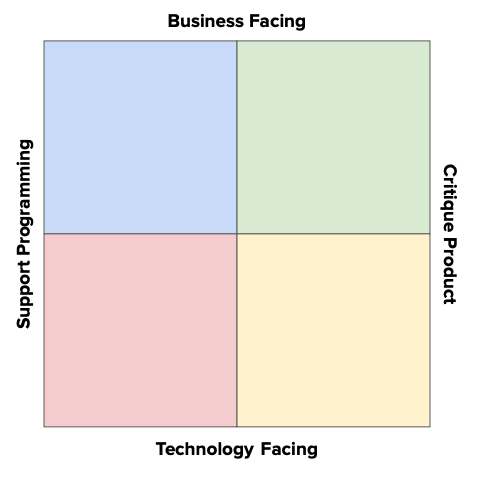 When you combine the two questions (or axes), you get this grid (or matrix):